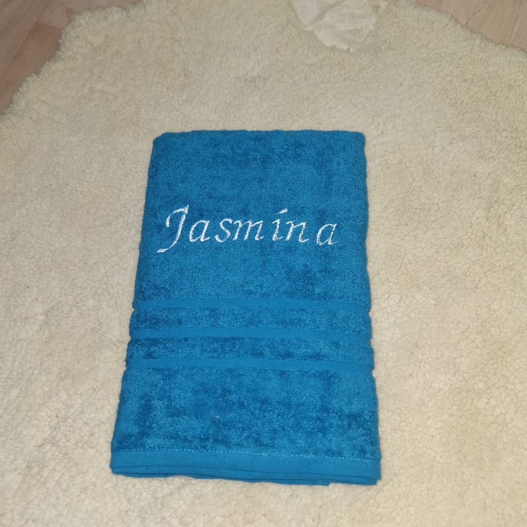 Na osušce je  výšivka se jménem na přání.